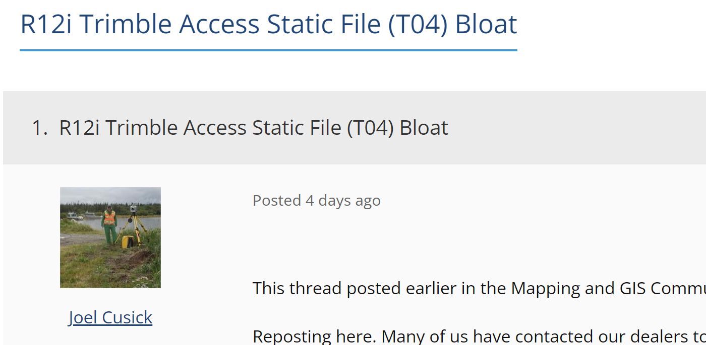 Subject: R12i Trimble Access Static File (T04) Bloat
