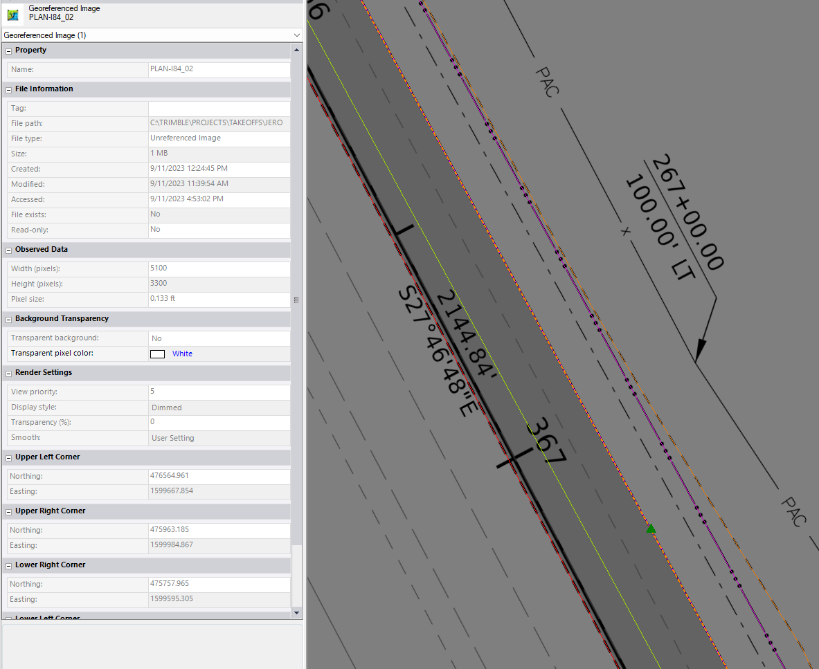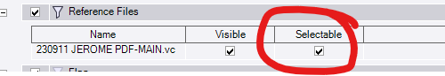 I have a project with 71 PDFs geo-referenced under different view filters, I have another 70+ to import, I do not want 140 files shown under Project Explorer>Imported in the main project. I then reference this PDF project into my main one and turn off "Selectable" under Advanced View Filter Settings>Reference files, because I do not want to be able to select the PDF just a 2D line, Annoying to always have 2 options to select, PDF and Linestring. When I select the line to view the properties it always brings up the properties for a pdf, not the line string. SS below of the linestring selected but properties of the PDFs
