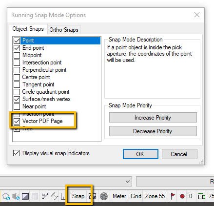 Not the answer, but maybe a workable solution. Have you tried turning off 'Vector PDF Page' in Snap Options?