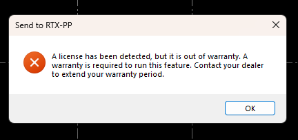 Is anyone else getting this error when importing T-04 files and sending to RTX-PP? "A license has been detected, but it is out of warranty. A warranty is required to run this feature. Contact your dealer to extend your warranty period."