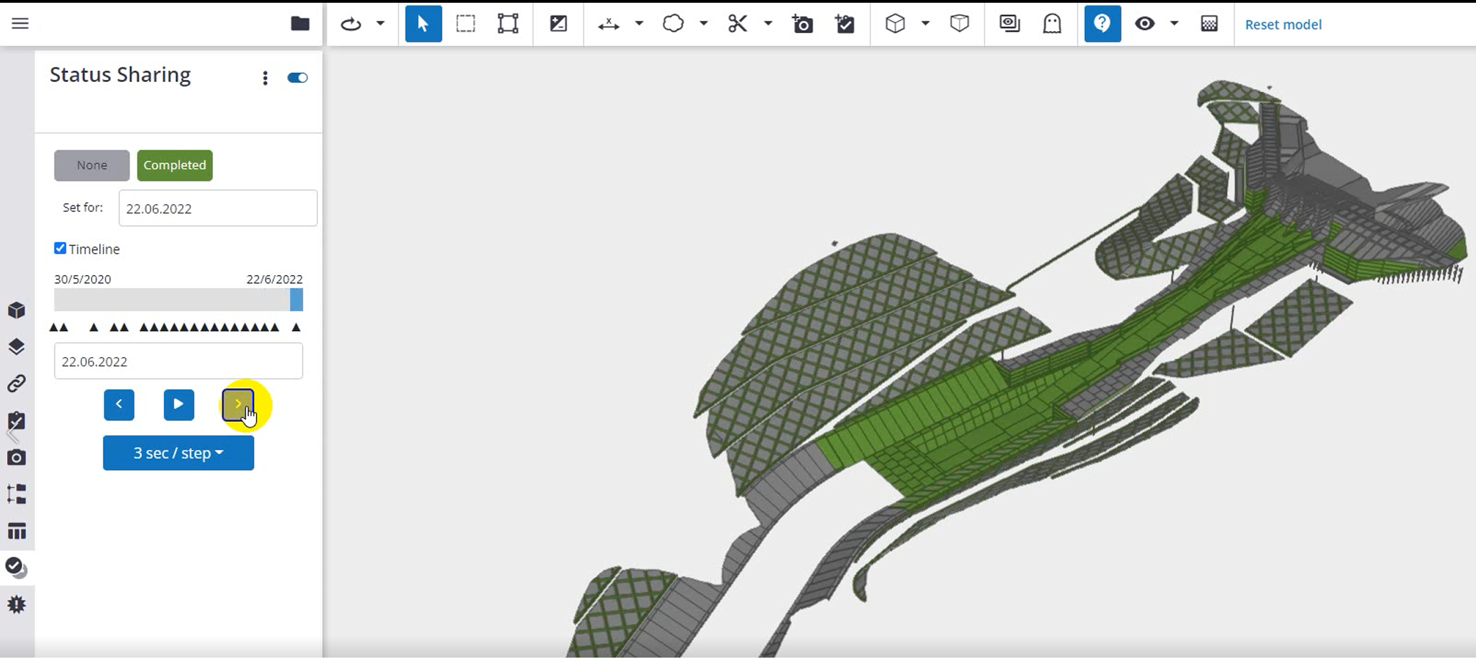 We are using Status sharing to track up concrete pouring. All objects are shown up on 3D view where completed are green and uncompleted (None) are gray. How to hide all uncompleted objects so we can see only completed objects and make a reports for them?