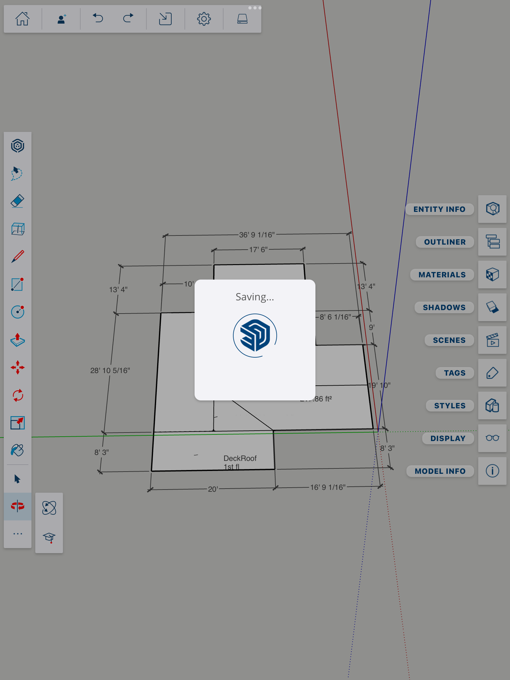 Hi Ray I was in sketchup on my iPad trying to save the drawing Trimble so I could open it on my desk top. It's over 24 hours and it's still doing the same. My drawing is there and all my tool bars but nothing responds. The Trimble icon is in the center being continuously circled-saying save