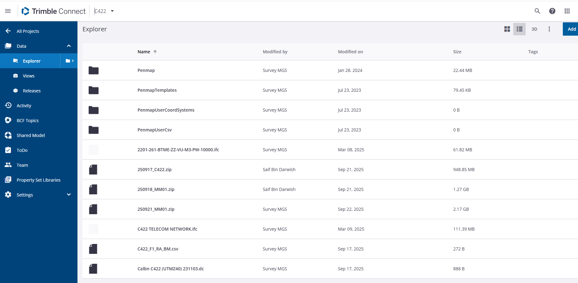 As a workaround I go to the Trimble Connect Web where the folder opens. I "Move" the zip file outside the subfolder. Return to Connected Workspace in TBC. Refresh. I can now access the zip file and import.