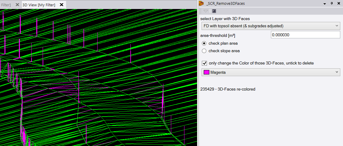So, I have to utilize another one of my macros. I export the surface as DWG, which converts it to 3D Faces. I then bring it either back into the same project or an empty one.