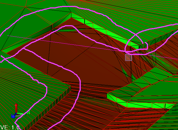 That prevents it from being a one macro task since my DTM cleanup tool combines/average closeby vertices if they fall within a certain threshold. It would combine the vertices at the bottom of the spike and maybe the ones at the top as well, but the spike would persist and retriangulate occasionally across the road to some other vertices.
