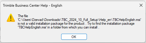 After click OK same window is show again, after click Browse and navigate to TBCEnglishHelp second message appears, and after Click Cancel installation stops.