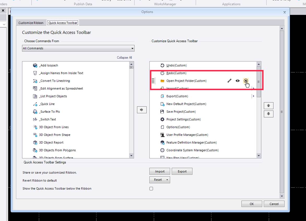 Locate exactly the "Open Project Folder (Custom)" with the folder in front and X it out or delete it.