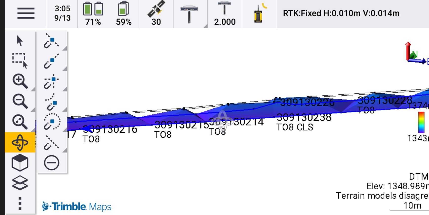 pretty sure in access the fxl lines are not used at all, this causes a major problem in surface calculations. you can see here a long stockpile with major volume not included in the surface even though the lines were selected when creating the surface: