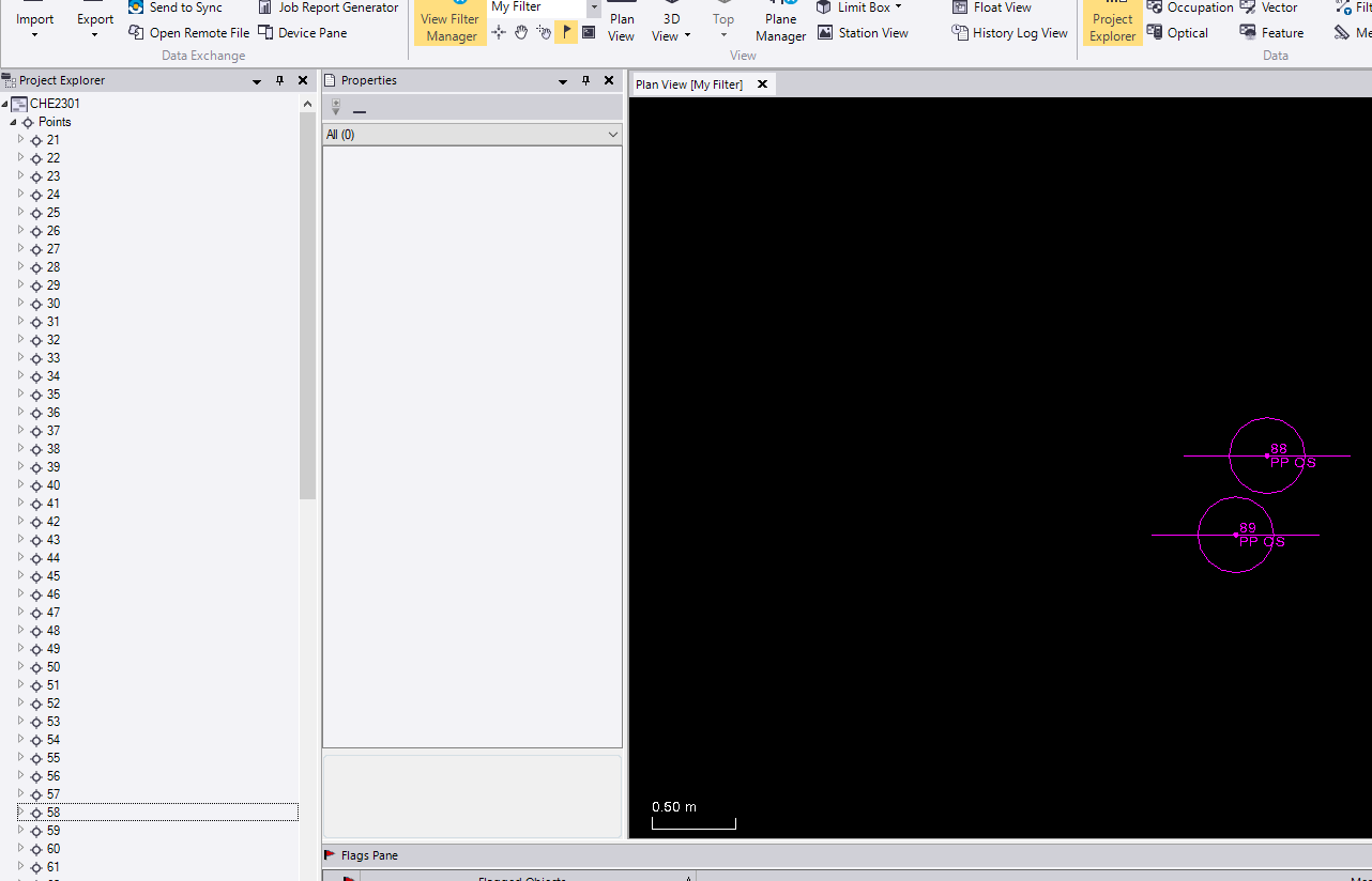 for many iterations of tbc (5.9 currently) i have seen extra random points exported from the custom csv exporter. i have had trouble tracking down where the points come from, but a colleague believes it only happens when an fxl file has been used in the project. these are troublesome because they have no relevance to the project at hand, from what i have seen. here you can see that i have 14 points that are not even in the tbc project. this is a major quality problem. top of the list in tbc is point 21.