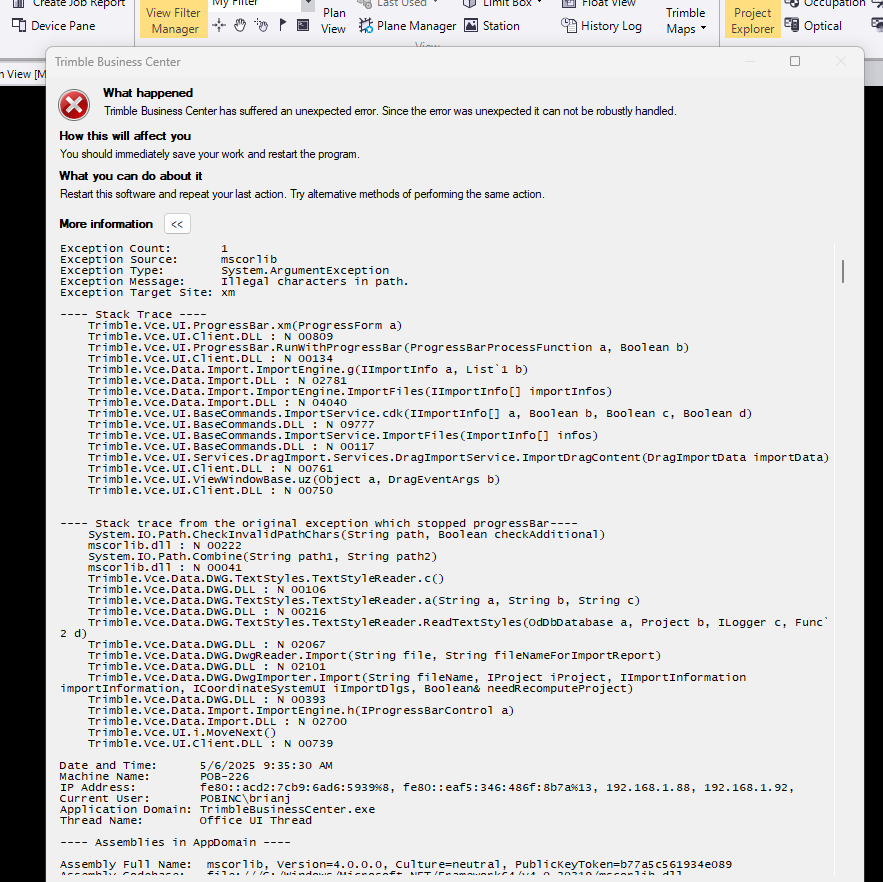Subject: TBC CAD Import Error "Illegal Characters In Path"