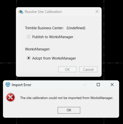 TBC failed to import site calibration from WorksManager