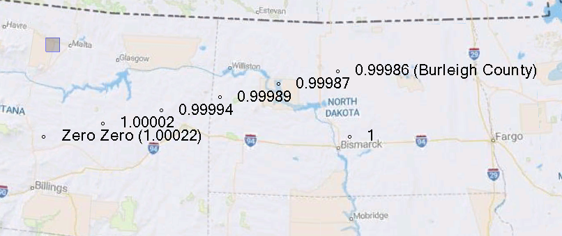 Ground coordinate * Burleigh County conversion factor (cf) = Grid coordinate (state plane-South Zone)