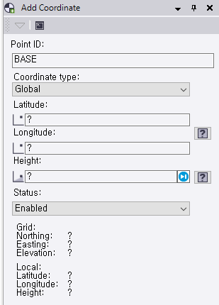 When I add the coordinates of the point, the global coordinates are displayed as ?but site calibration says it needs global coordinates.