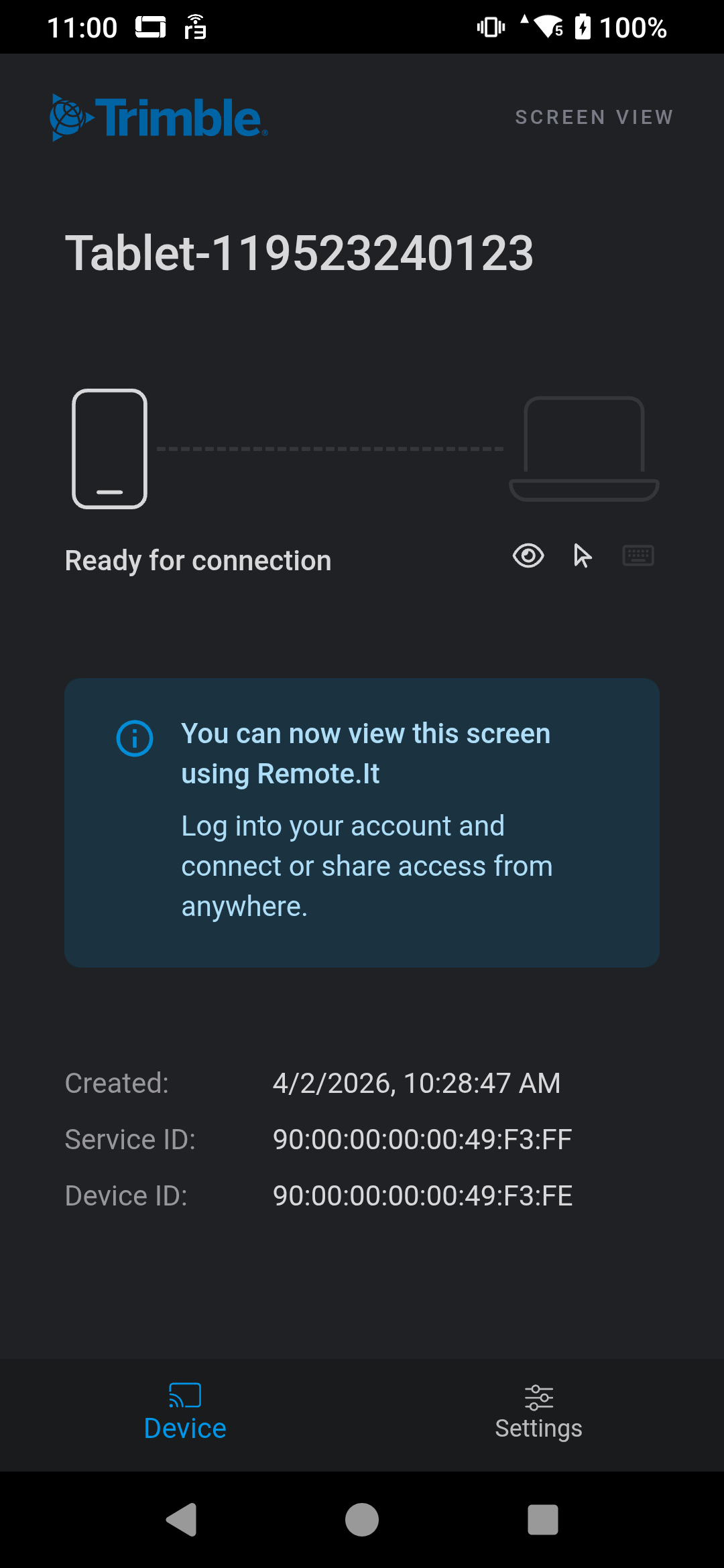 My company just recently got 2 new TDC6 tablets. I am trying to use remote access from Works Manager which it does allow me to get in remotely to the tablet but does not allow me to have access. I can see whomever is using the tablet, what they are currently doing on the screen including any movements. Does anyone know the setting in the tablet that would allow access on my side? It does say on my pc when I am remote a program called "Remote.It ScreenView Client"