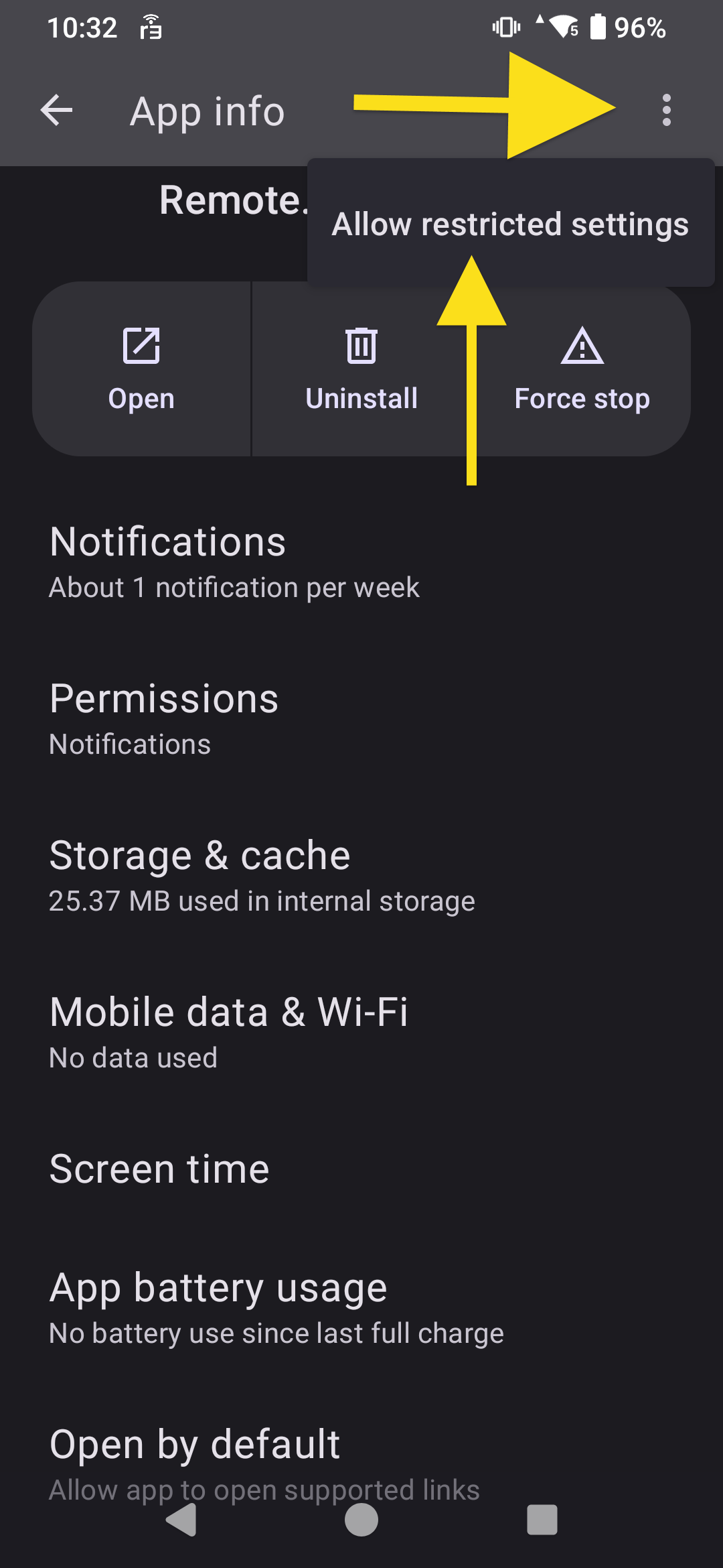 Tap and hold on that icon, and select "App Info" and then tap the three dots in the upper right and the "Allow Restricted Settings".
