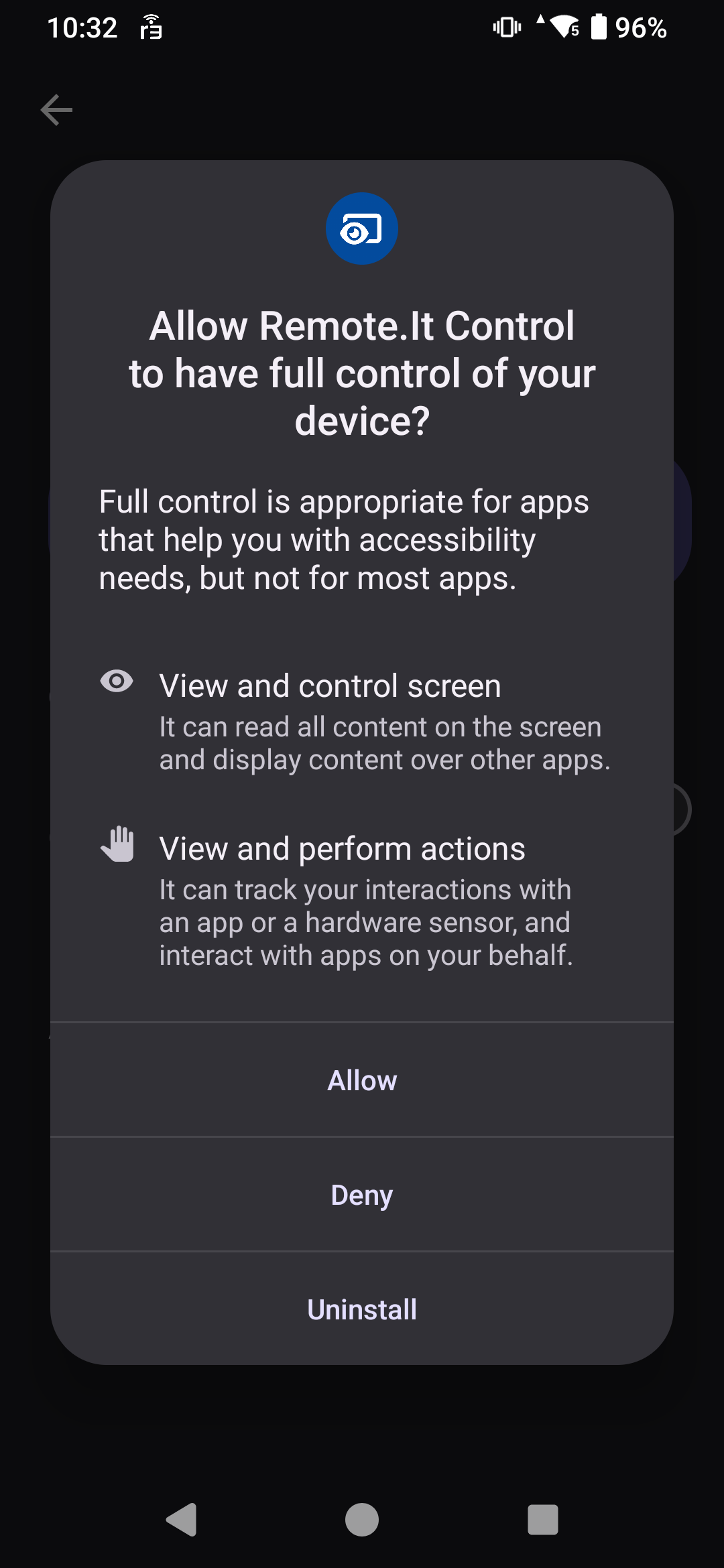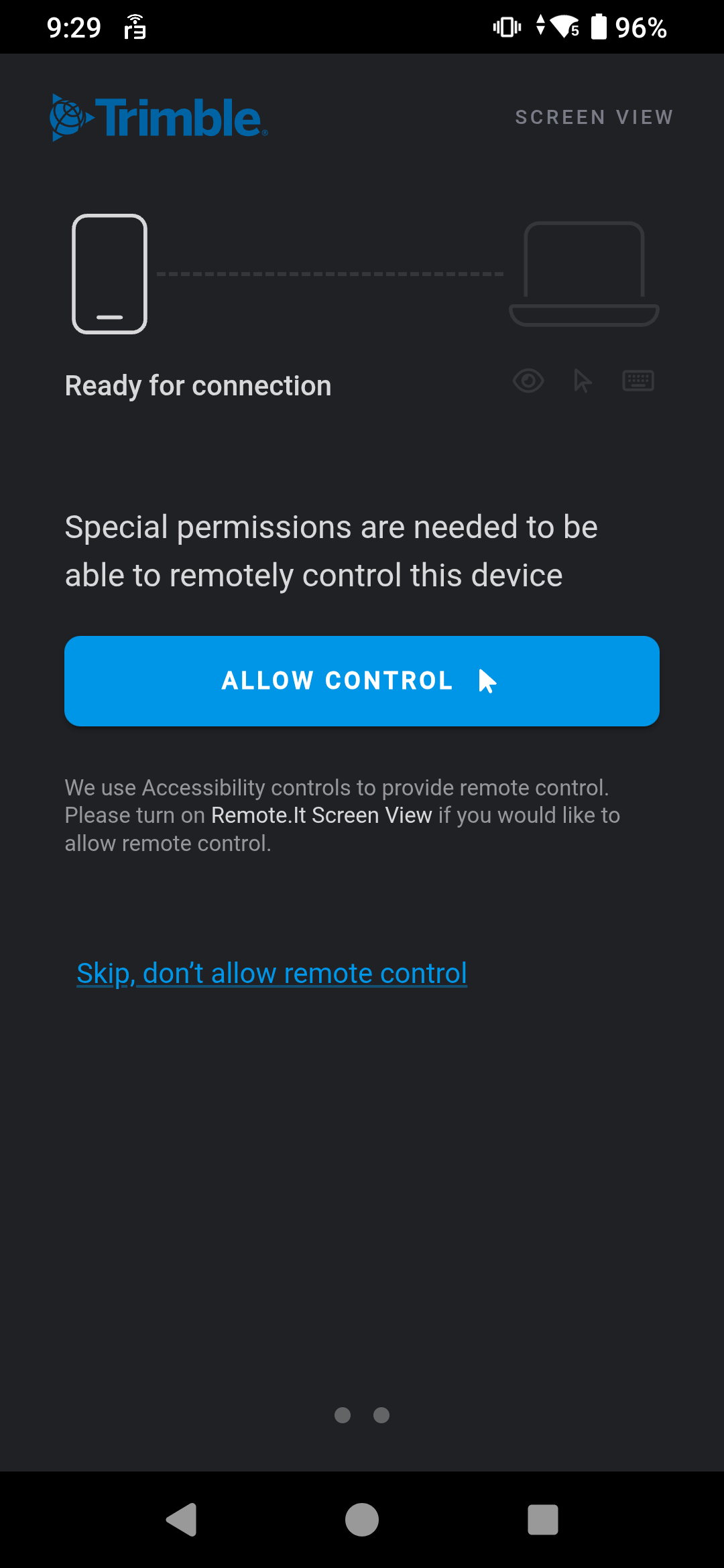 After doing that, go back to the list of apps, and open the Screenviewer app. And then tap the big blue "Allow Control".