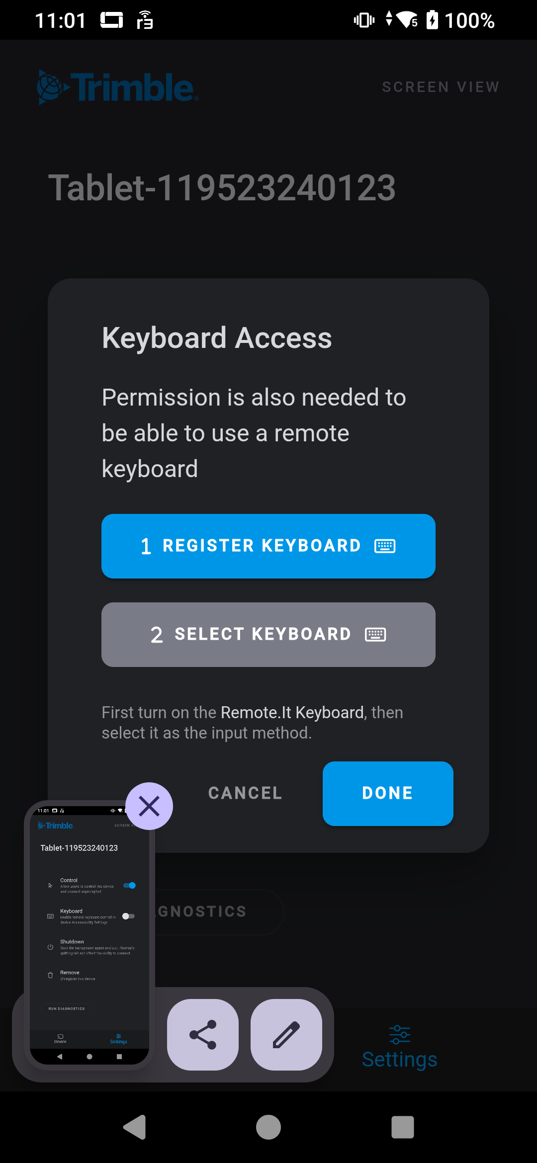 And then "turning on" the Remote.It Keyboard by tapping on it.