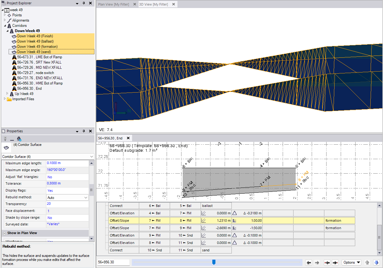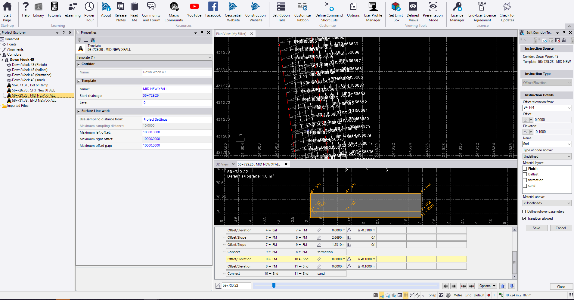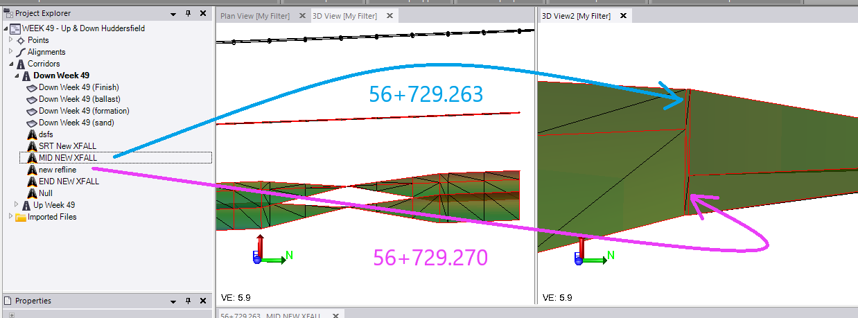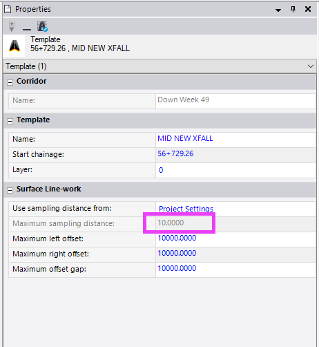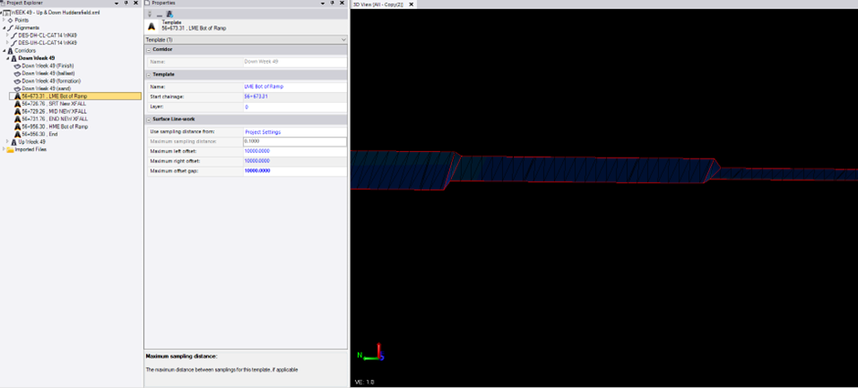 so where i have a cross fall change in my formation i would like it to compute and interpolate the transtion between templates. what i am finding is the change is isntant between templates. and there is no smooth transition just instant change. there are times where there will be a transition but it wound be uniform and evenly modelled like for example below you can see that i have a cross fall change over 5m. the 3D model view you can see that the change in cross fall appears to be not uniform, any advise to help resolve this issue is appreciated.