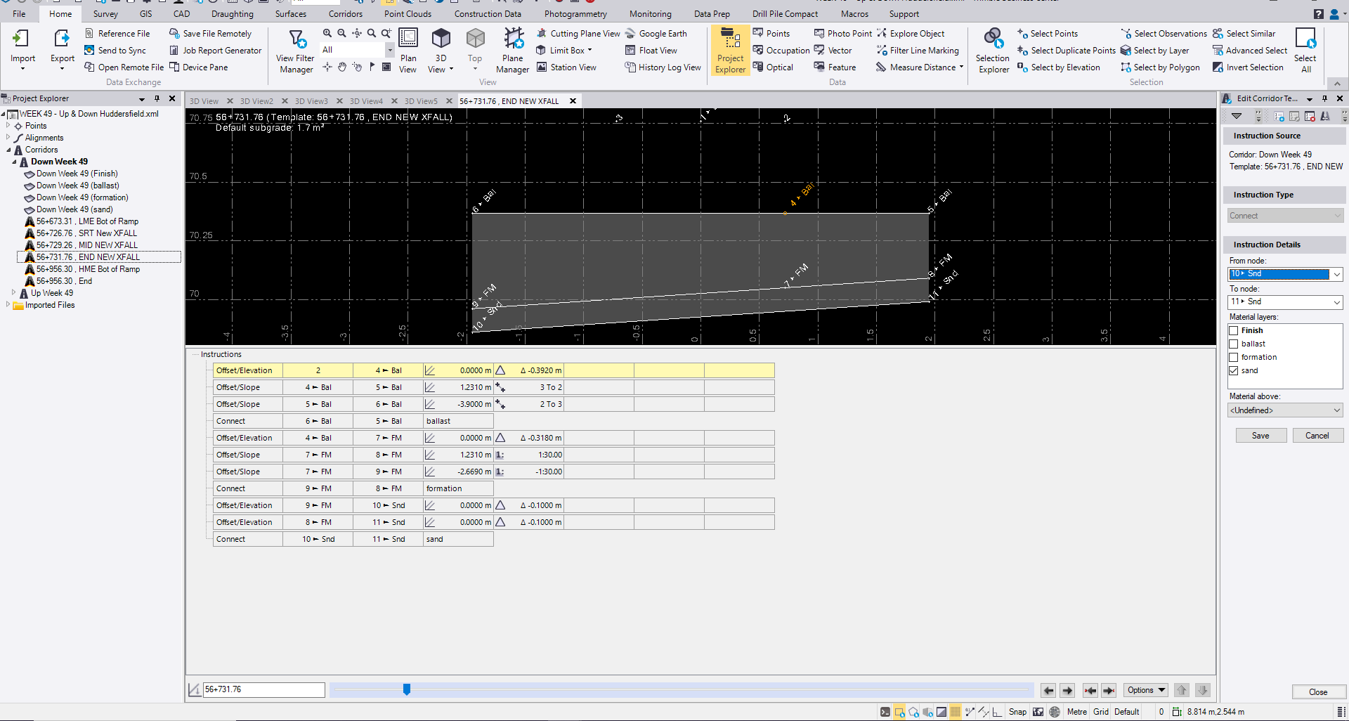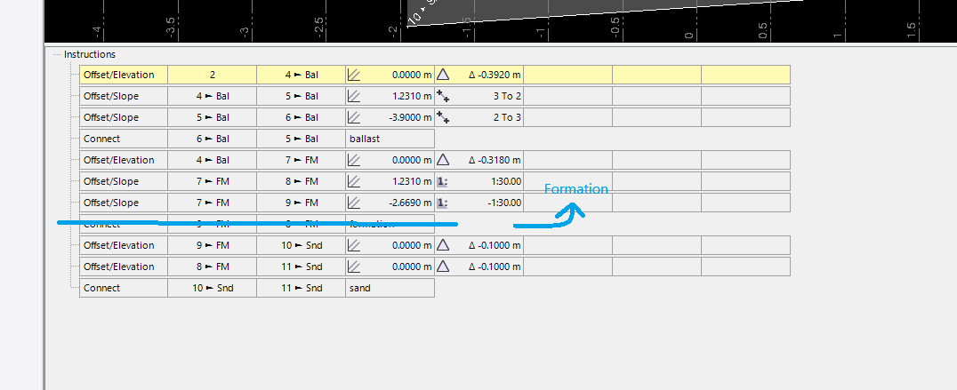 Ive refered back to a manual and it does appear that the imputs are correct. Erik when you say to make it all in one template, will that stationing instruction ensure that the surfaces are different as the formation transitions along from Right to left to right.