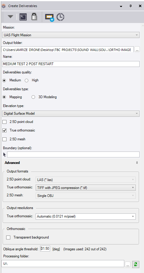 Medium uses some speed improvements, as some of the internal processing steps do not impact the final deliverable of the true-orthophoto as much and allow us therefore to create the true-orthomosaic with some processes being executed on lower level content internally.