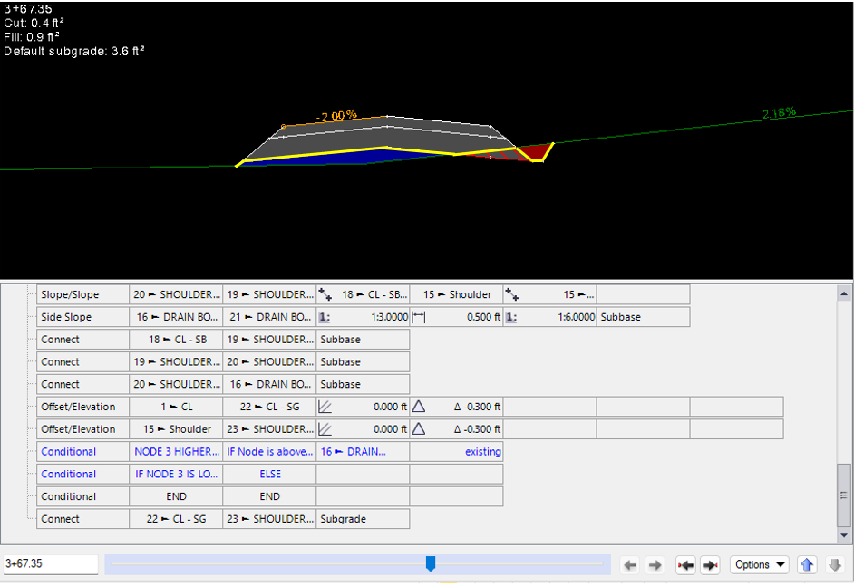 Using corridor template, I have built my Finished/subbase/subgrade model however I am having trouble meeting the above condition.