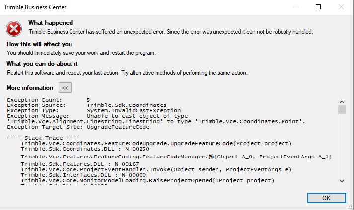 I get this message when trying to open a project file, the last thing I did was use the "Best-Fit Line" function and wanted to open a 3D view and it crashed and wont let me open the project anymore.