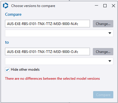Hello everyone.I have a question about comparing 3D models.When I try to insert the models to compare them, the version of each model doesn't appear and the ‘compare’ button is frozen.Can anyone help? Thank you.