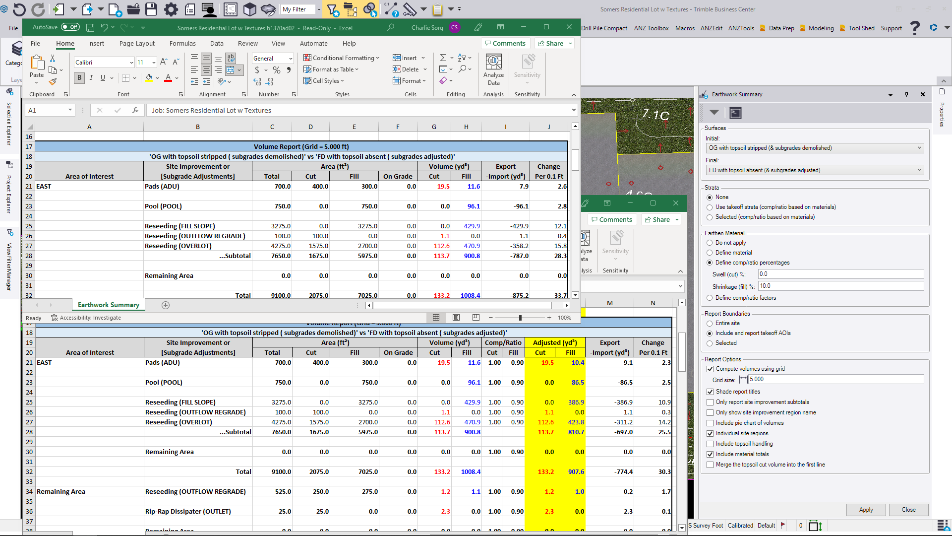 Going through this in class. It doesn’t seem to calc expansion/compaction. We tried by material and by percentage.