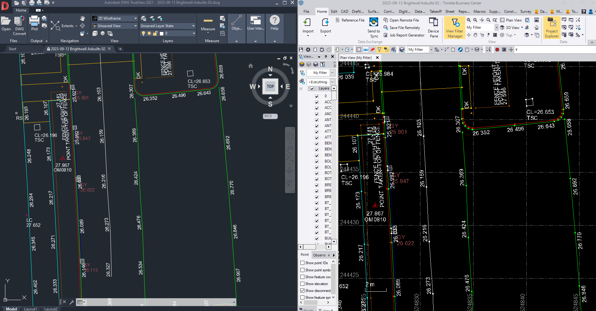 I am having a re-occurring issue when exporting to CAD a survey I have draughted in TBC