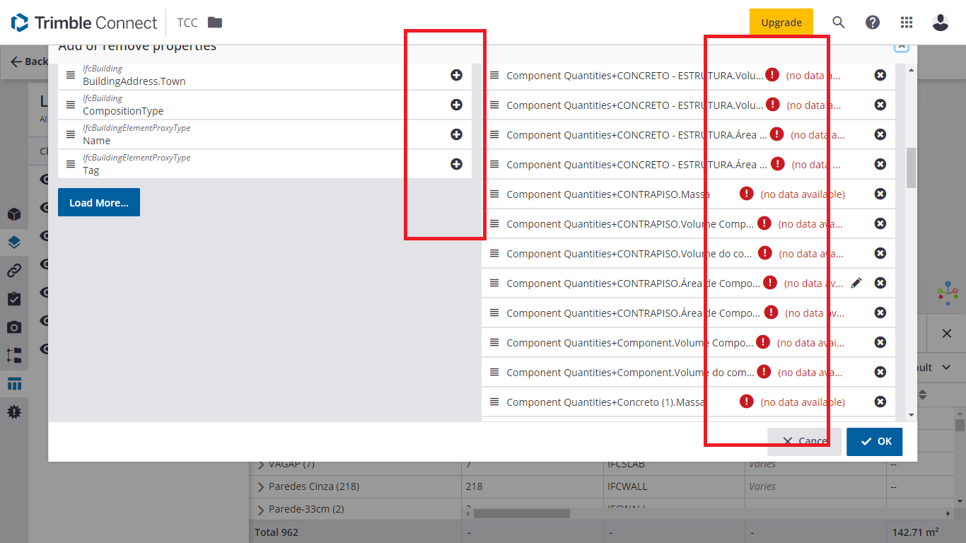Probably there is an issue with IFC model. When you have some version of the model which you have used to create a data table and afterwards you will overwrite IFC model with new version and it doesn't have those properties (exported with different properties), this error could appear.