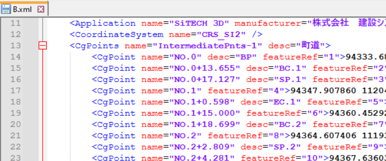 Those points are not calculated by TBC, they are included as single coordinates in the XML, highlighting the start/end of the different geometry types of the alignment, i.e. straight/curve etc. They are not connected to anything, pure additional information. http://www.landxml.org/schema/landxml-1.2/documentation/LandXML-1.2Doc_CgPoint.html