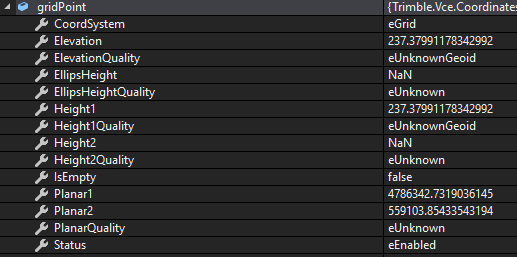 In response to the 2nd suggestion, I have all the Trimble DLLs in my object browser custom component set, and I can't find anything called CoordinateUtilities or ConvertCoordinateGridInUnderlyingSystem. I also tried your first suggestion and only got null back, but maybe I needed a coordinate collection with a point in it.