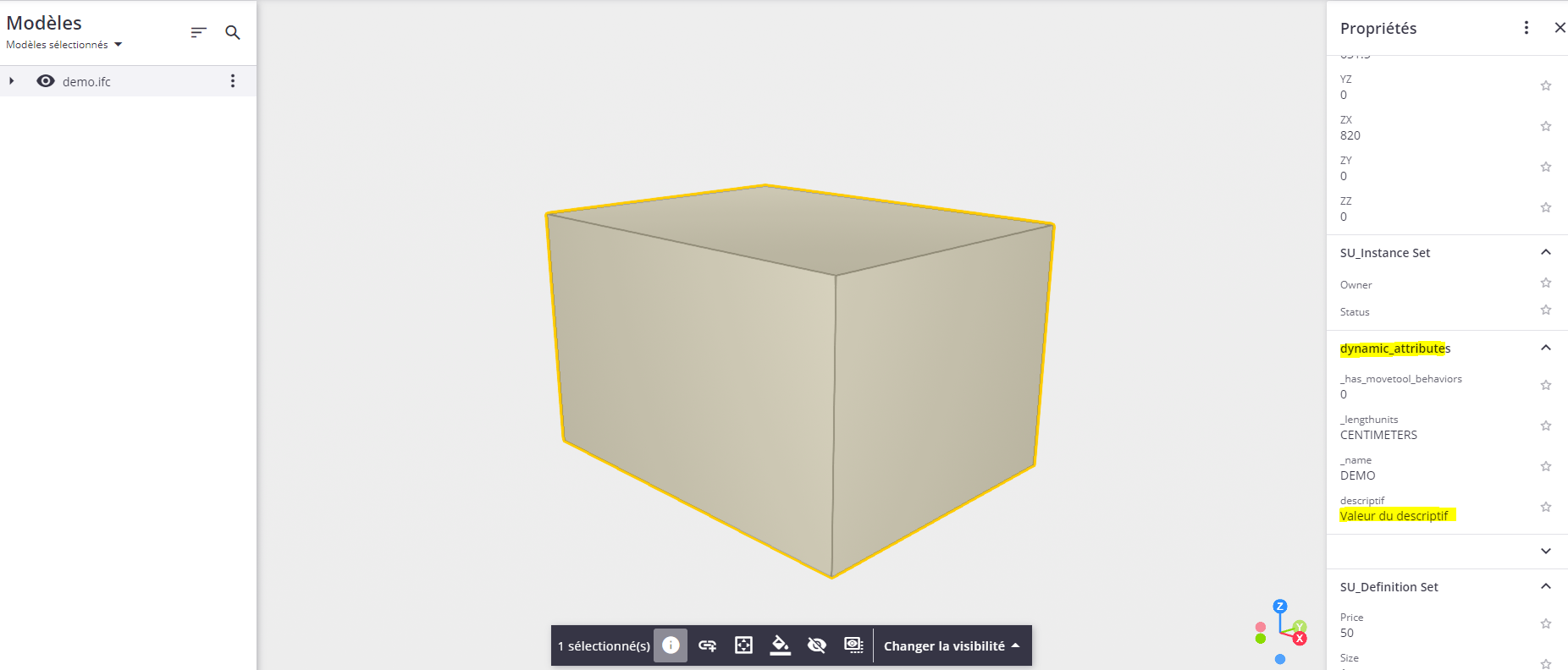 Have you tried by creating an IFC in sketchup? Maybe this would solve your attributes problem?
