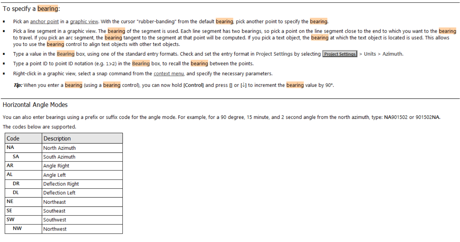 Erik, I have done this but the lines do not lay out the direction they are suppose to. The survey I have shows bearing by direction, North, East, South, West, etc so I am hvaing trouble determining the best means to input this into TBC. I am starting to think I need to convert this to lat/long bearing and input it that way.