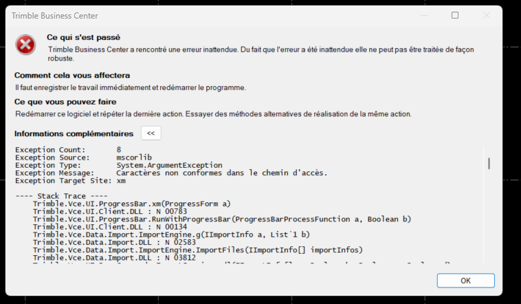 Everytime I try to import an DXF in TBC (tried to drop and drag and also import) , I have this error message. Tried to uninstall and reinstall, tried with older versions of tbc, tried older version of DXF. Someone know the problem ?