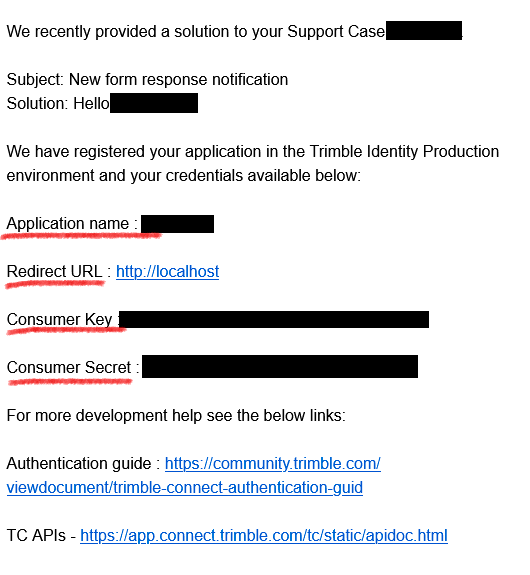 For use the API you need the credentials, you can get it from Trimble Connect support :