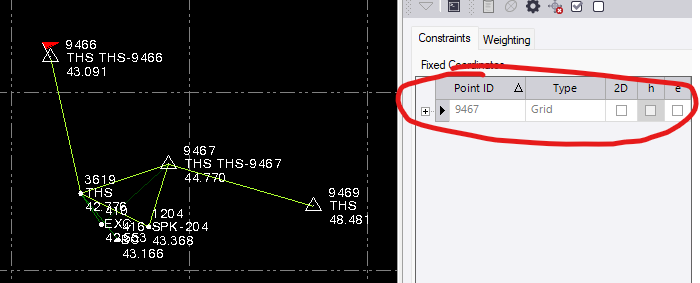First I thought that you didn't set/import your points with control quality. But according to the point symbols that should be the case.