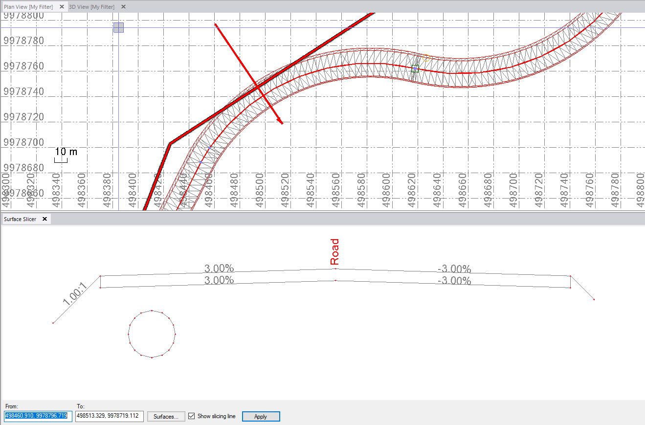 We are amidst construction and concerned that a newly laid gas main is too close to the road bed. We would like to show the gas main, currently represented as a 3D linestring, projected to a cross section.
