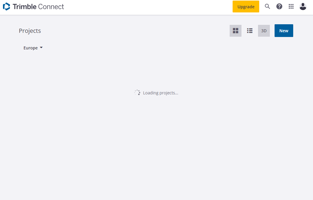 Using trimble connect in web browser, none of the projects load, I am stuck on endless loading screen (as seen in screenshot).