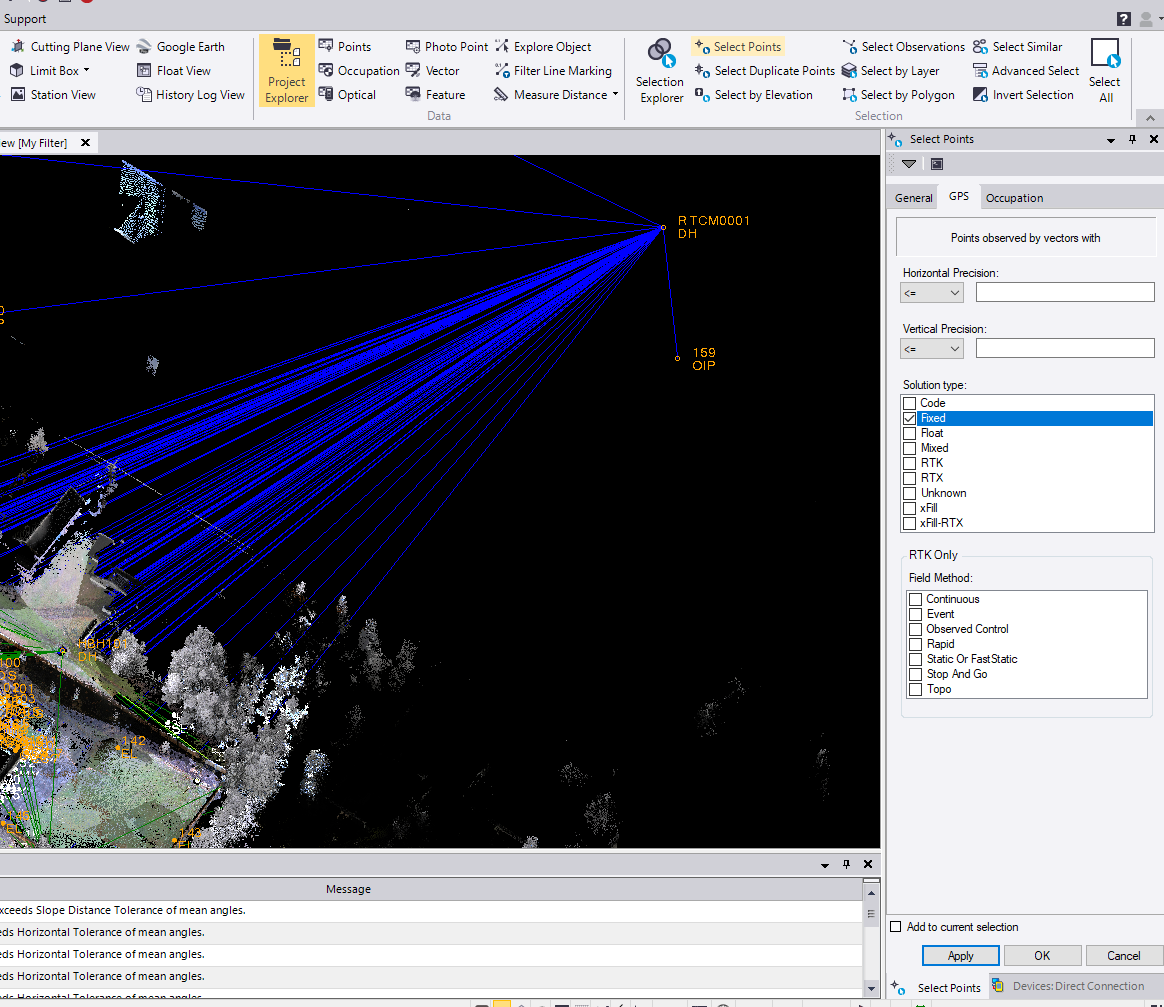 Hello everyoneI have been trying for some time now how I can select GNSS measured (RTK) points and then export them to a CSV file.The goal would be to select these points with a few clicks.I import the data as a JOB (from TA). These are mixed, total station, GNSS, scan data).Does anyone know how these points can be easily selected?By the way, the measurements in TA were made with the position setting, i.e. not vectors.Best regardsMattias