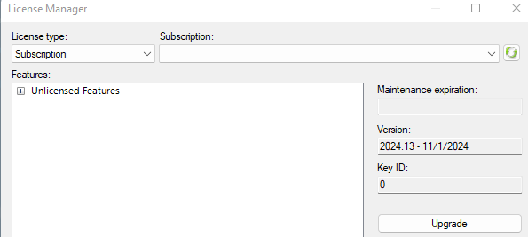 I have gone to the license manager section choosing the option: License type by subscription but, where the trial subscription should appear, it is blank.