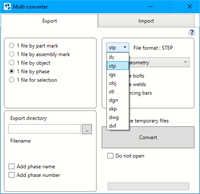 @Alexandre Collin) to note that the MultiConverter Tool is doing its job. Only when there is no cooperation from the supplier do we have to get creative. Looking at the Solid Works import options, IFC also just appears to be listed. Only, an IFCzip is not. Requesting an IFC from the supplier then seems like the simplest solution, especially if files need to be exchanged more often. In this situation, the expectation is that it will only be needed once. The IFCzip file is extracted using the standard windowns UNzip functionality. The IFC file then becomes available and the processes run again.