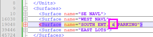 The issue is the "&" in the name of the third surface. If you remove that it will import.