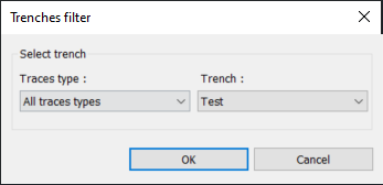 The dialogue box Trenches filter will pop up. This includes a list of all calculated cross-sections. Select a cross-section and click OK.