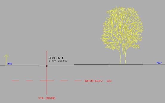 This is a function for automatic illustration of symbols in sections based on Landscape symbols in plan drawing and feature code in the terrain section from the terrain model. The cross-sections have to be generated with the function Novapoint Terrain information Draw cross-section from terrain model. The section must be generated from a line object (Reference line) in the terrain model.
