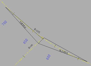 All the sight parameters at the fields Length Left side and Length Right side are given default values based on the selected road class. Point in a cell and type a new value to change a parameter. It is important to control all the parameters before drawing the sight triangle.
