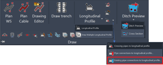 This function adds existing pipe connections to a drawn longitudinal profile.