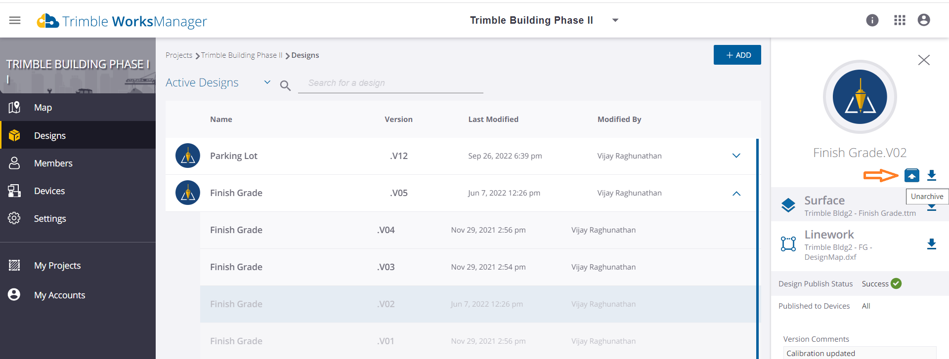 WorksManager auto archiveIn addition to the above, WorksManager has a built-in auto archival mechanism. As you edit designs creating more design versions, WorksManager system auto archives them - keeping the last three versions active (including the latest current version) and automatically archiving the rest. For instance, when you create Parking Lot.V04, the system auto archives Parking Lot.V01; when you create Parking Lot.V05, it auto archives Parking Lot.V02 as well… and so on.