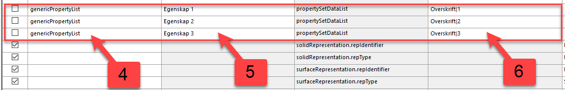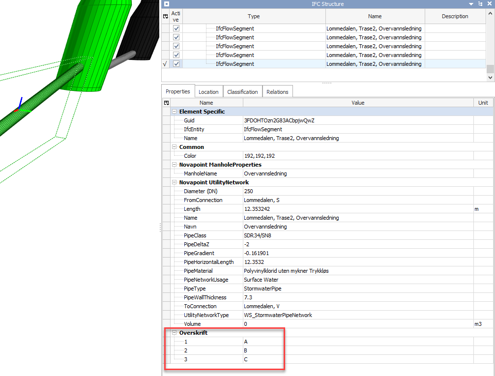 In this example, generic properties have been added to all WS objects in a trench called "Trase2". See photo number 1 below: