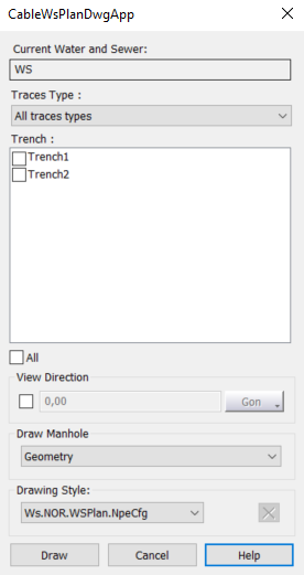 The cable configuration displays pipes and manholes very much alike the WS configuration. The difference is the symbols and details. Plan cable displays the actual size of the manhole, where plan WS displays the manhole defined in the configuration.